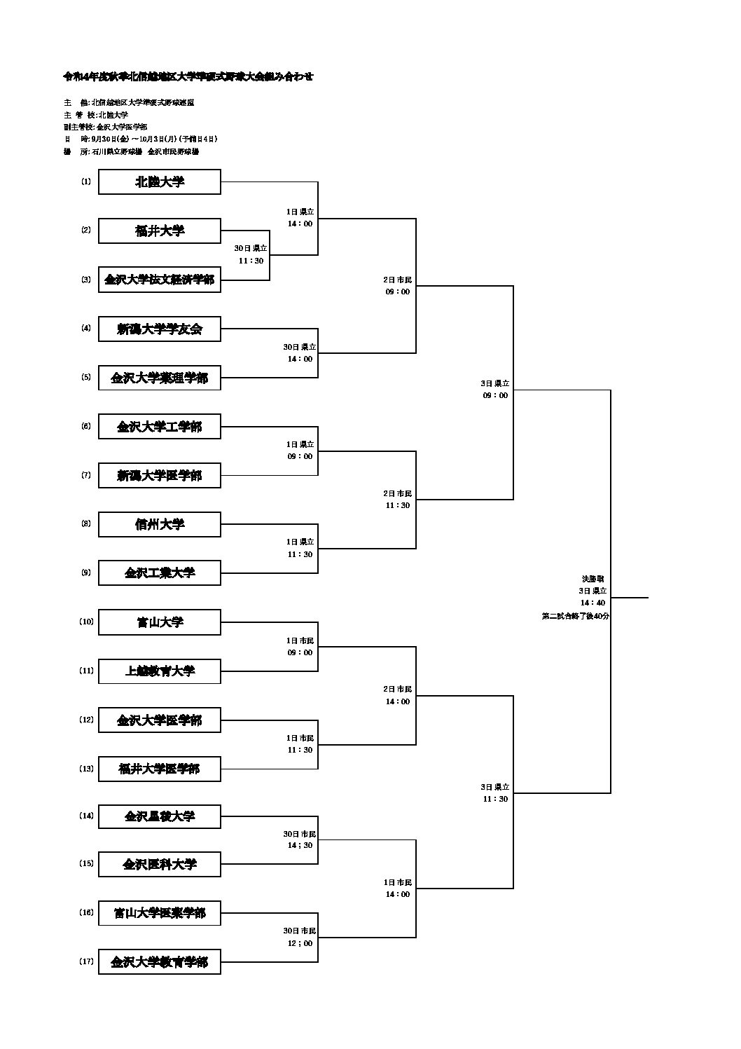 令和5年度開催大会概要について ●春季北信越大学準硬式野球大会(予選) 【会期】 令和5年4月22日(土)~5月20日(土) リーグ戦 日程表 ●春季北信越大学準硬式野球大会(本選) 【会期】 令和5年 …