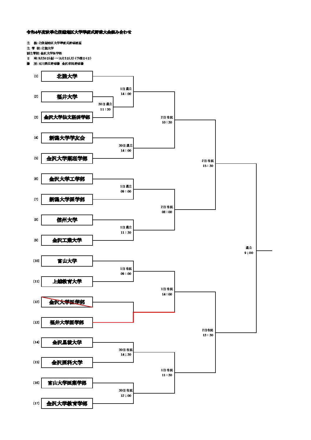 本日開会する令和4年度秋季北信越地区準硬式野球大会ですが、棄権校が出たため下記の通りに日程を変更します。ご注意ください。 <一部変更>大会組み合わせ